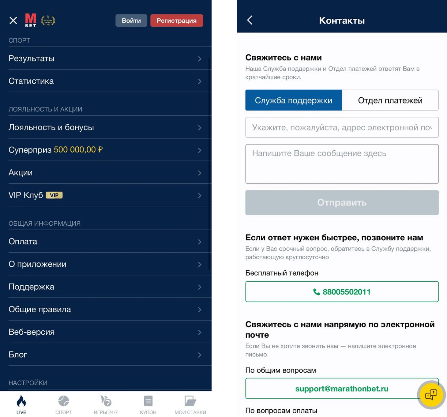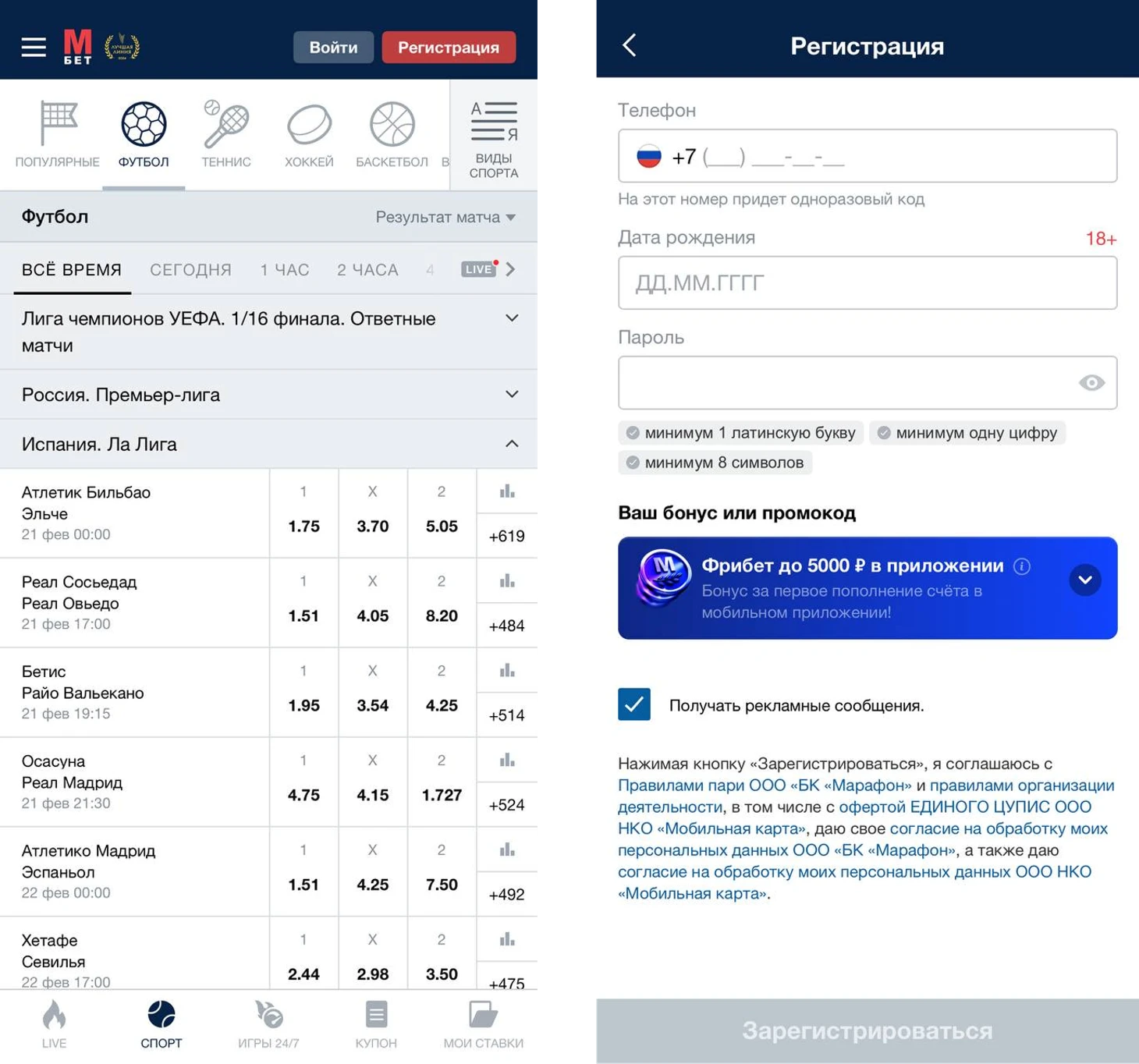 Пройти регистрацию в БК «Марафон» можно на сайте, в его мобильной версии или в мобильном приложении. Зарегистрироваться могут только граждане РФ, достигшие совершеннолетия.