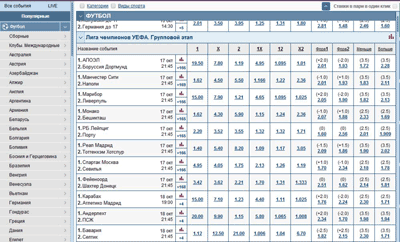 Посмотрим, какие котировки букмекер предлагает на игры популярных турниров: